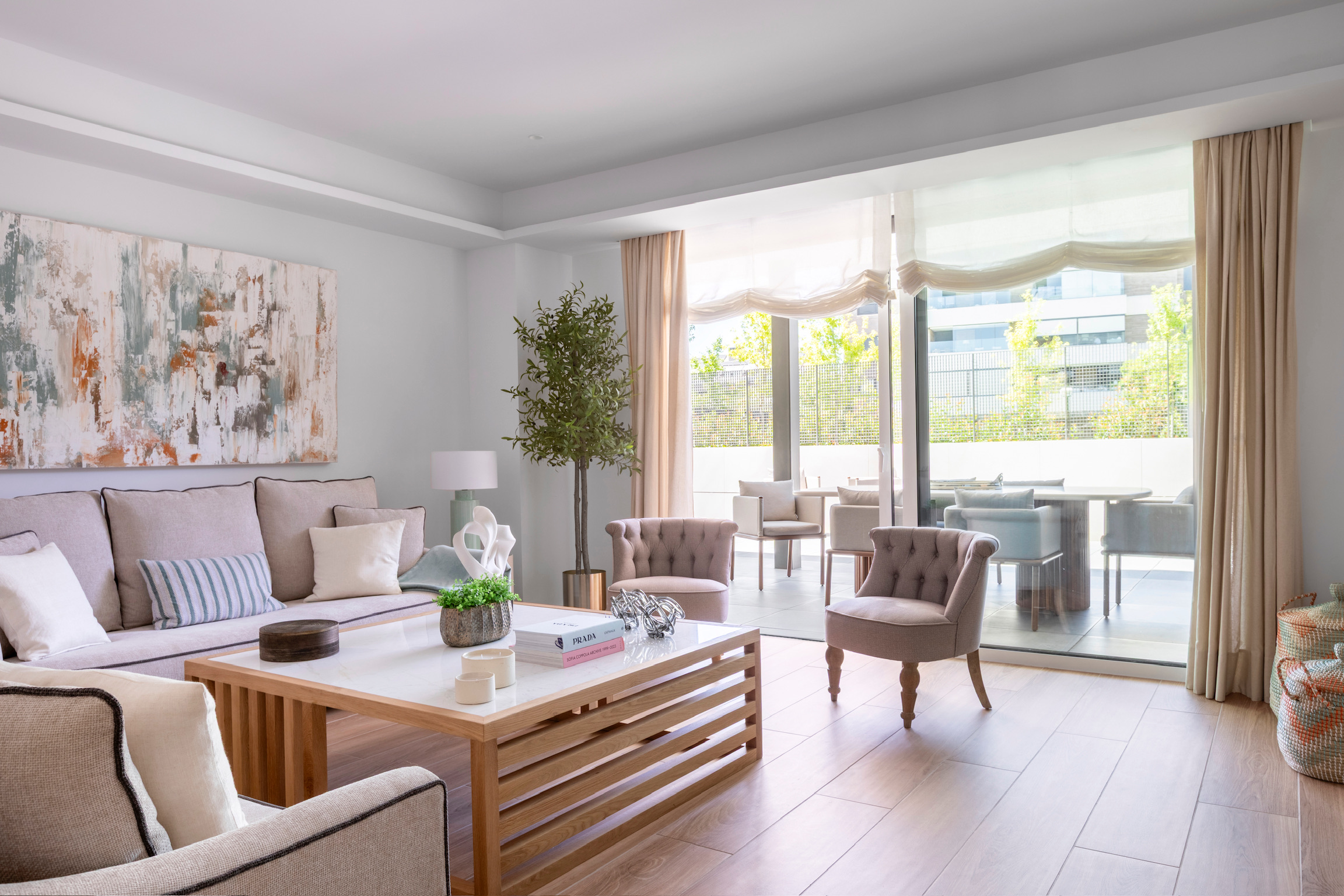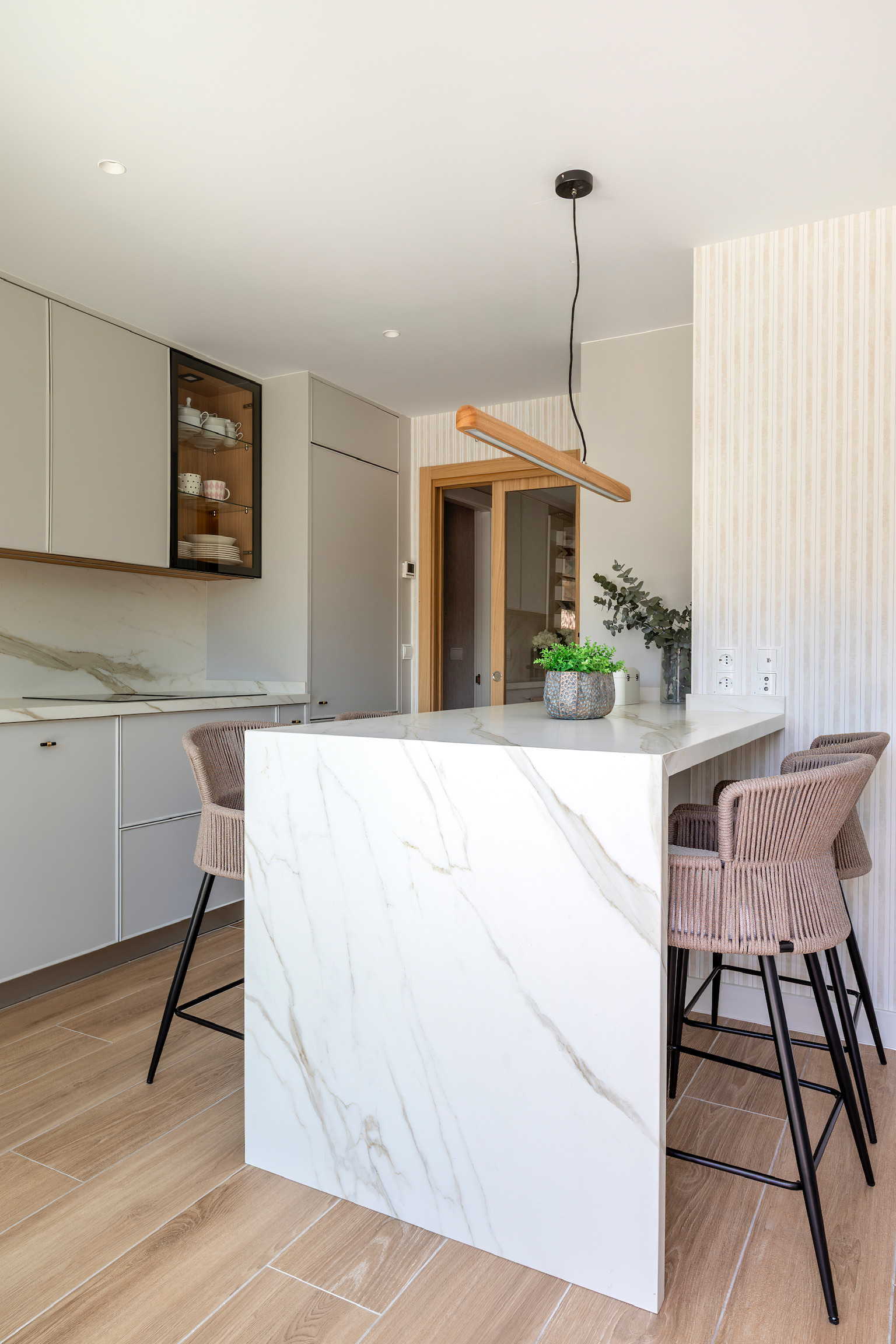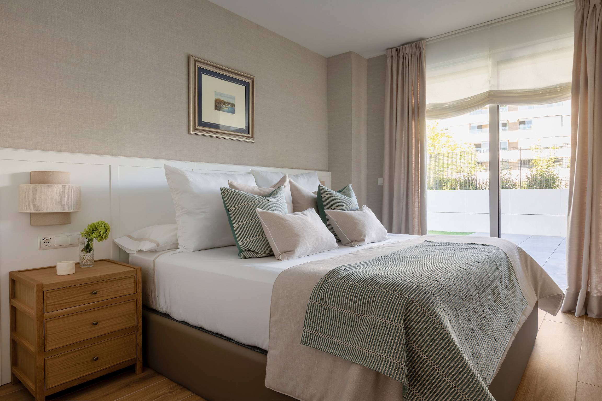 En este piso de obra nueva, el diseño interior se convierte en una prolongación natural de la arquitectura. El proyecto apuesta por un estilo moderno renovado, donde la luz y la transparencia son los verdaderos protagonistas. Los grandes ventanales del salón y la cocina permiten que la luz natural inunde cada rincón, generando una sensación de amplitud y serenidad.