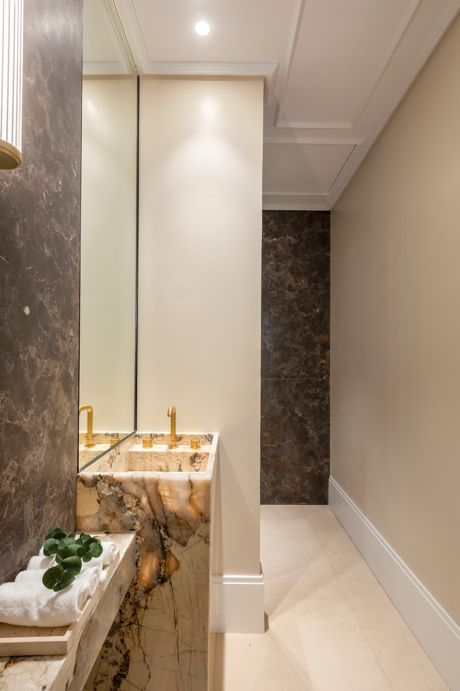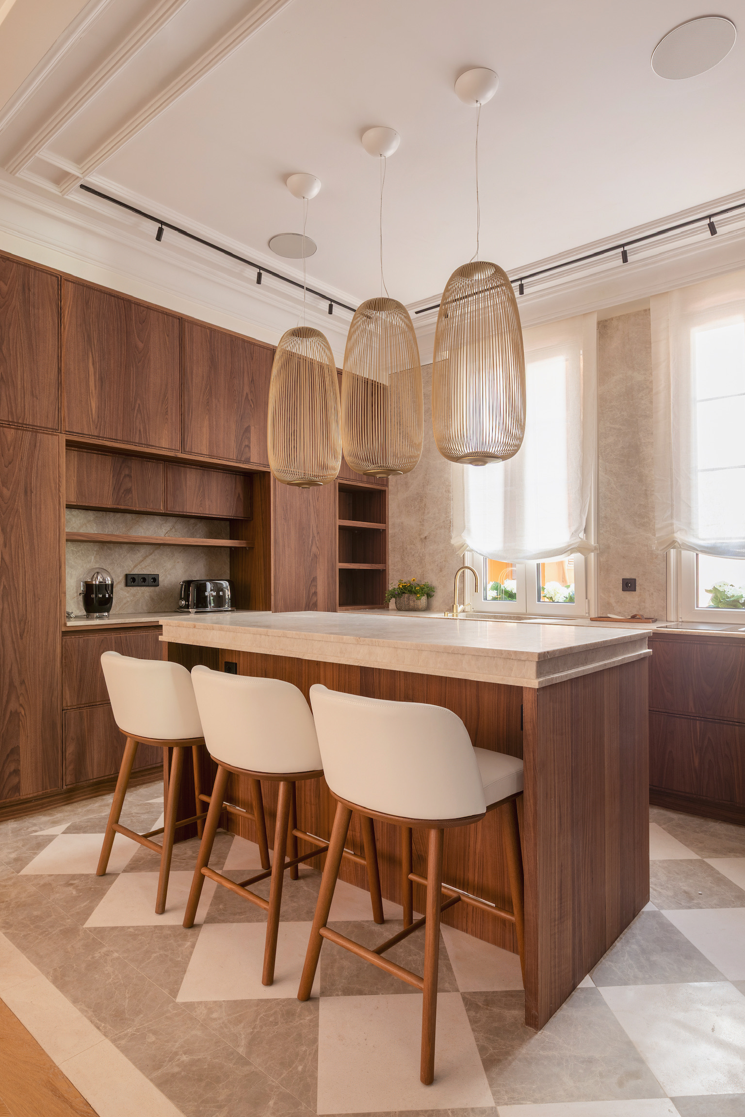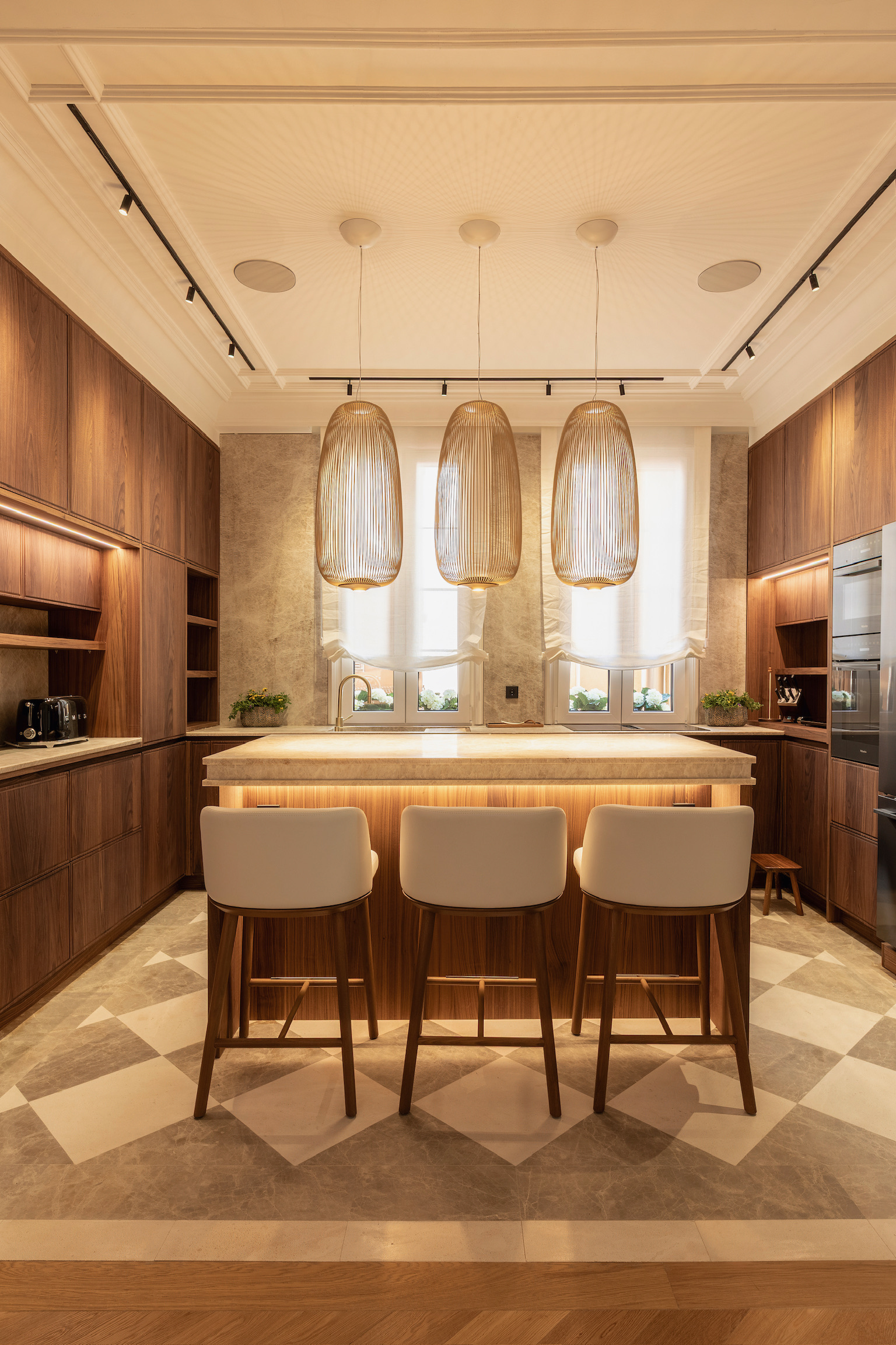 La cocina, con sus encimeras de mármol y grifería en dorado mate, es un homenaje al lujo discreto. Los baños, revestidos en mármol, se convierten en oasis de paz. Cada elemento, desde la carpintería hasta la iluminación, ha sido diseñado para ofrecer una experiencia de vida única, combinando la funcionalidad moderna con un toque de elegancia atemporal.