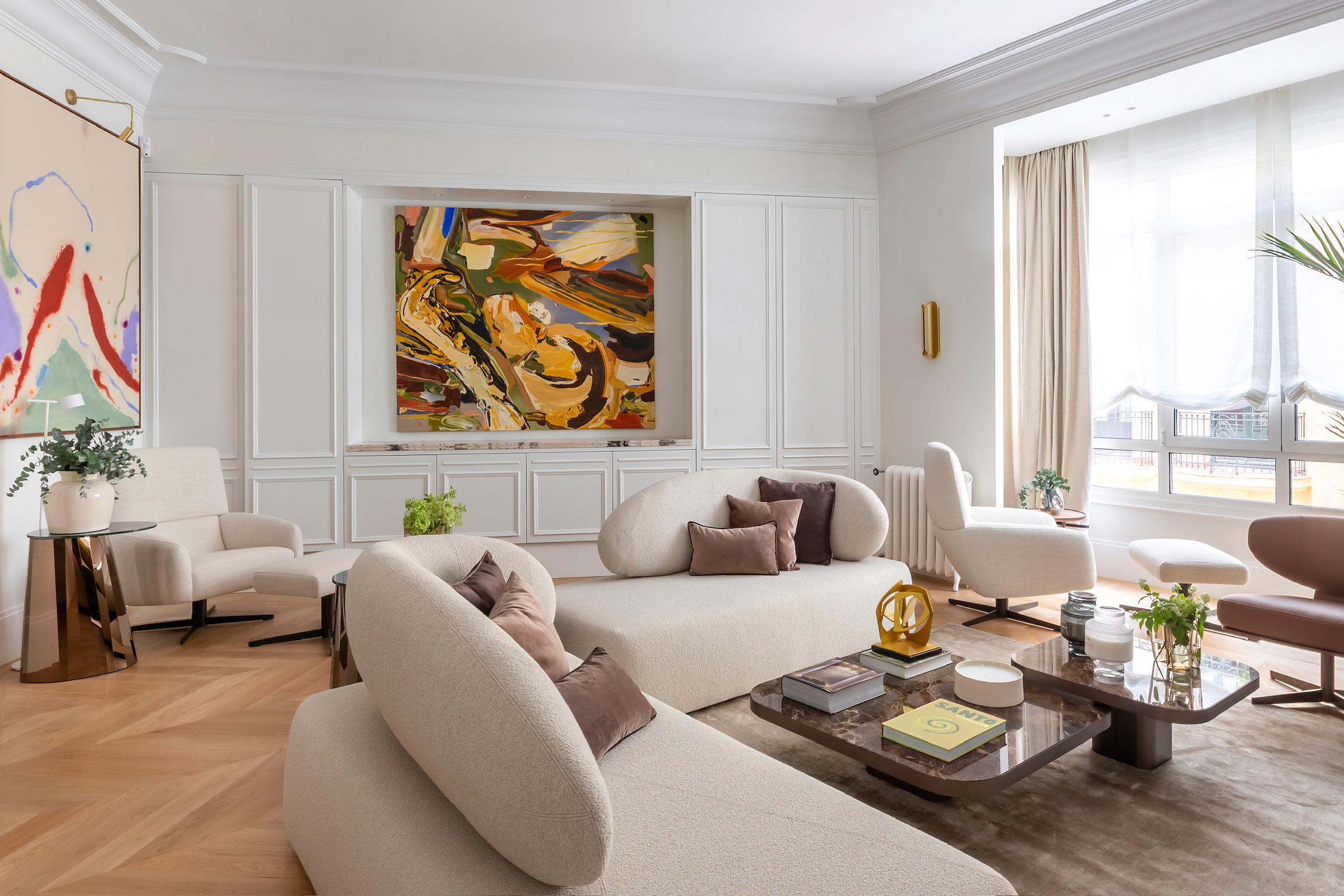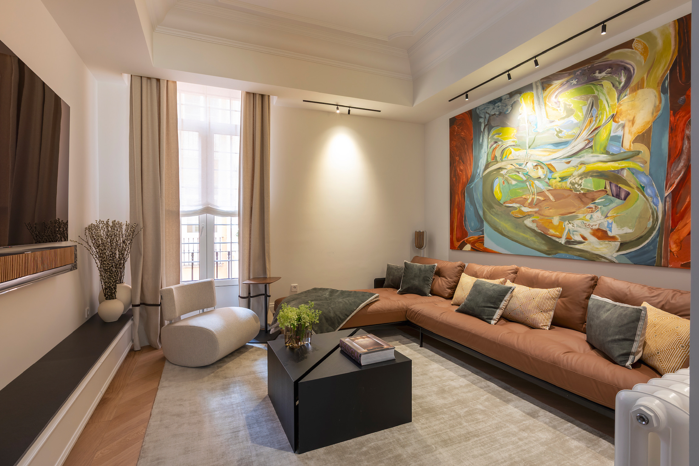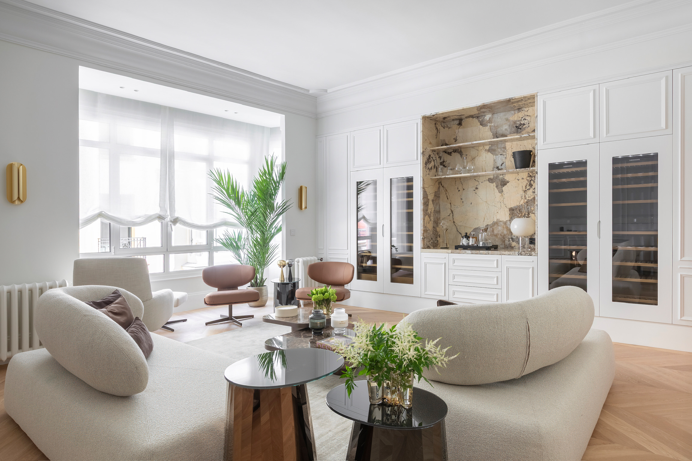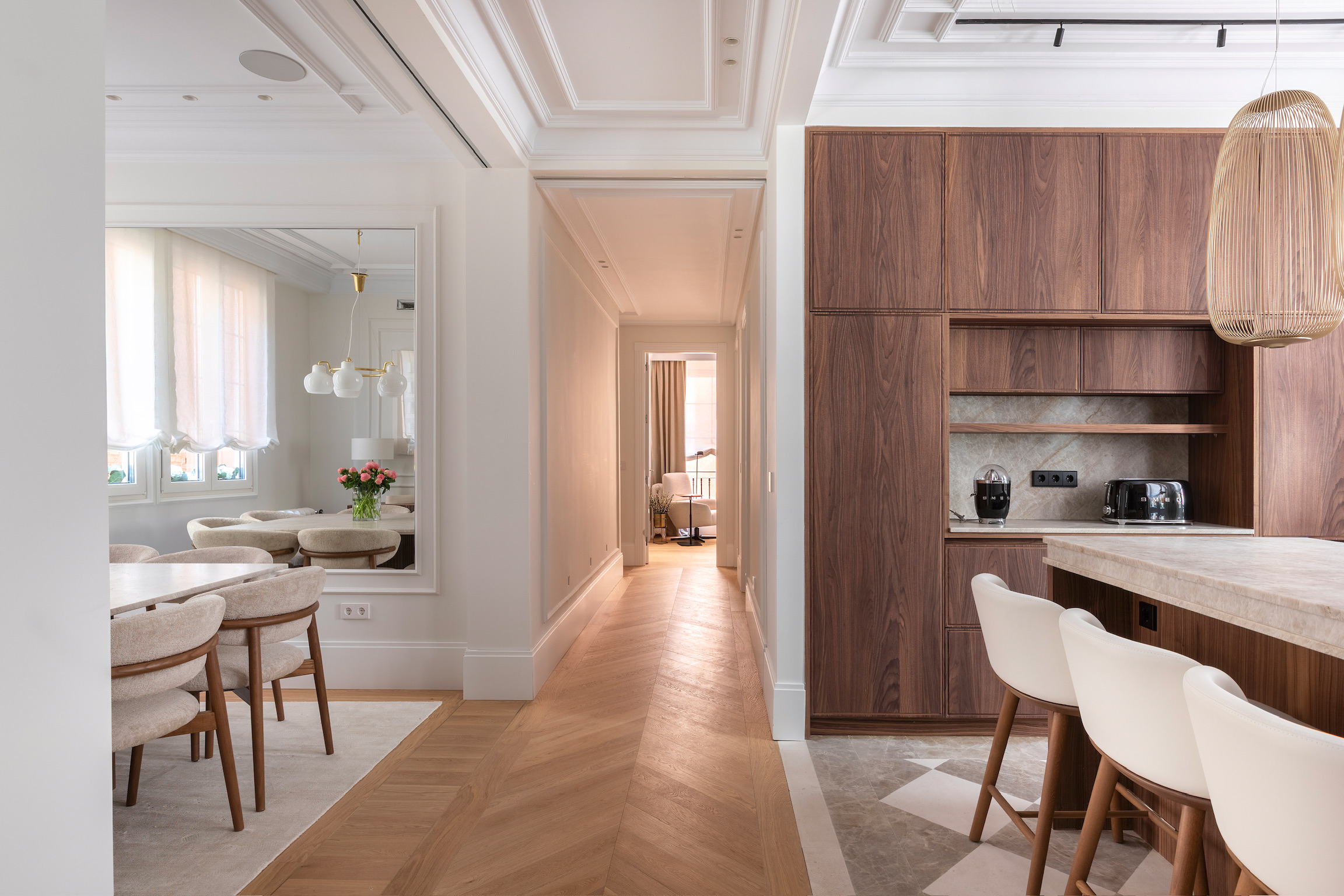 Con la reforma de este piso en el centro de Madrid se ha conseguido una perfecta armonía entre la tradición madrileña y el lujo contemporáneo. Ubicado en el vibrante centro de la capital, este piso ha sido completamente transformado, manteniendo su esencia clásica mientras incorpora una estética de lujo renovado.